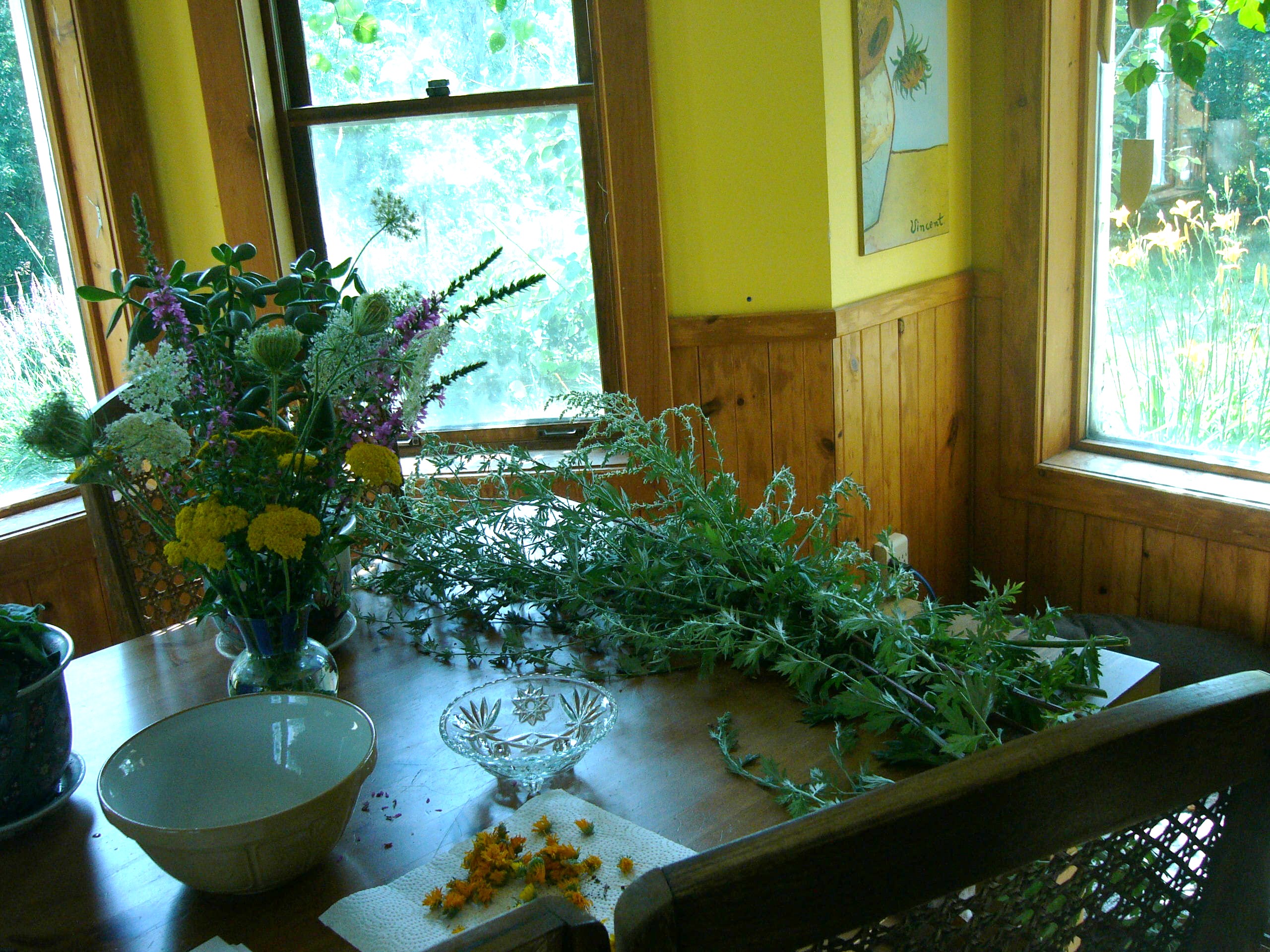 First of all, if you’re using wild plants gathered around your area, a couple of all-important reminders. Rule Number One of all wildcrafting; be 100% sure you know your plants. Even Dandelion has a lookalike( Cat’s ear) and while most of the ones that look similar will not be poisonous, some could have adverse effects and we don’t want to risk that! I’m a huge believer in learning a little basic botany to help with identification; take that extra moment and make sure you have Artemisia vulgaris, Leonorus cardiaca, Stellaria media. Knowing the Latin names and the defining characteristics of your plants is not a dry academic exercise – it’s essential. When in doubt, don’t pick.